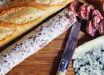 On my initial visit to France I ate saucisson my first night in Paris. I was staying with a friend and his (now) wife. Upon my arrival they sliced the dry cured pork sausage and made a plate with a baguette, fresh salted butter and brie cheese. To my knowledge there exists no better welcome to one's country and one's home.
