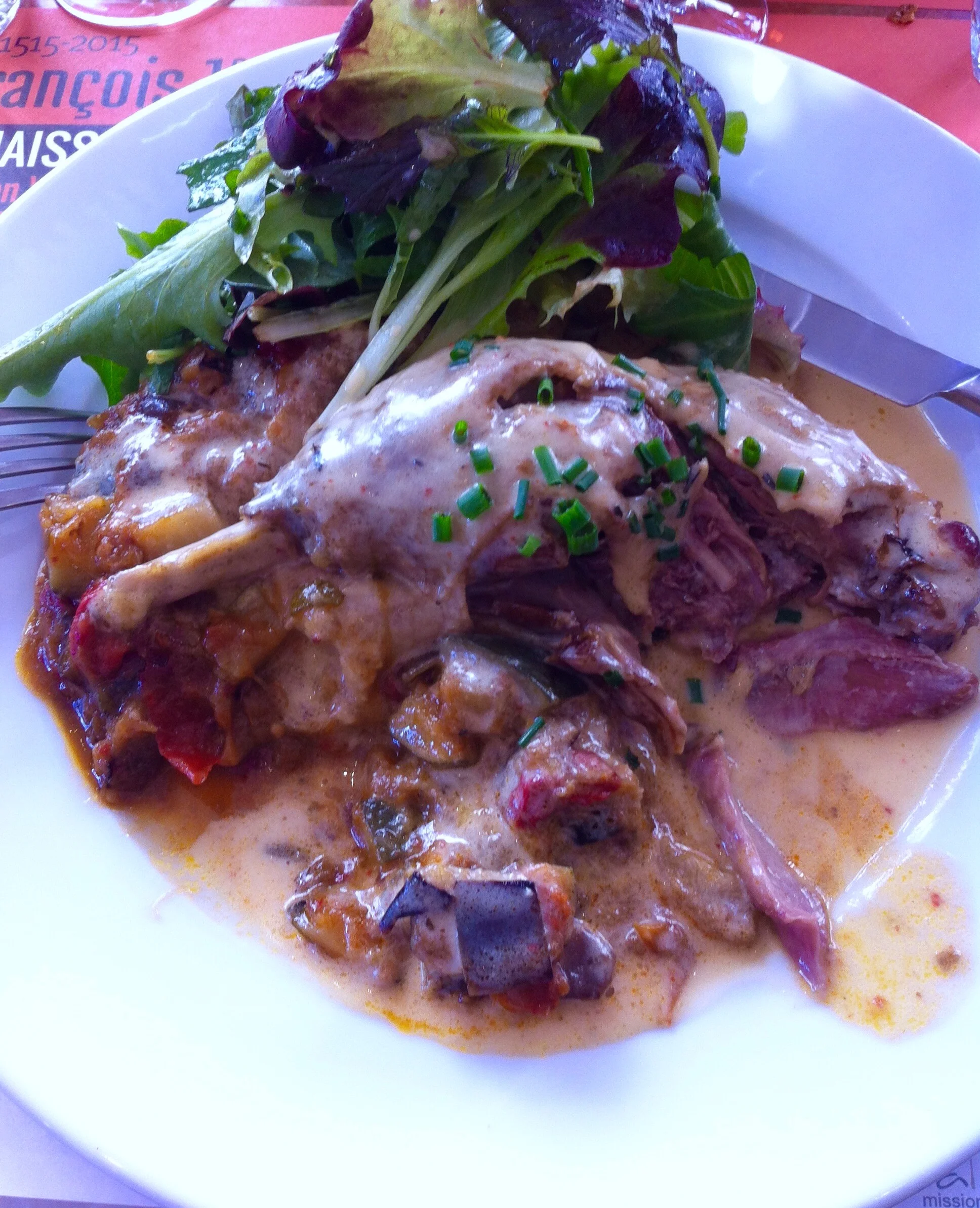The duck was outstanding; the meat was tender and served over a bed of ratatouille beside a salad with mustard vinaigrette. The owner was extremely kind and we spoke for several minutes about our origins and plans for our visit and while giving me a business card thanked me repeatedly for speaking french and visiting her city and her cafe.