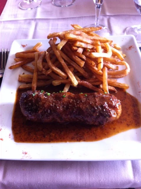 At the hotel we both became occupied with business matters on our computers and lost track of time watching some odd french version of Who Wants to be a Millionaire until suddenly it was almost 10:30 at night and we hadn’t eaten dinner. While researching available restaurant options that were open at such an hour - in the countryside, restaurants close between two and five pm after lunch and the entire town closes early after dinner.